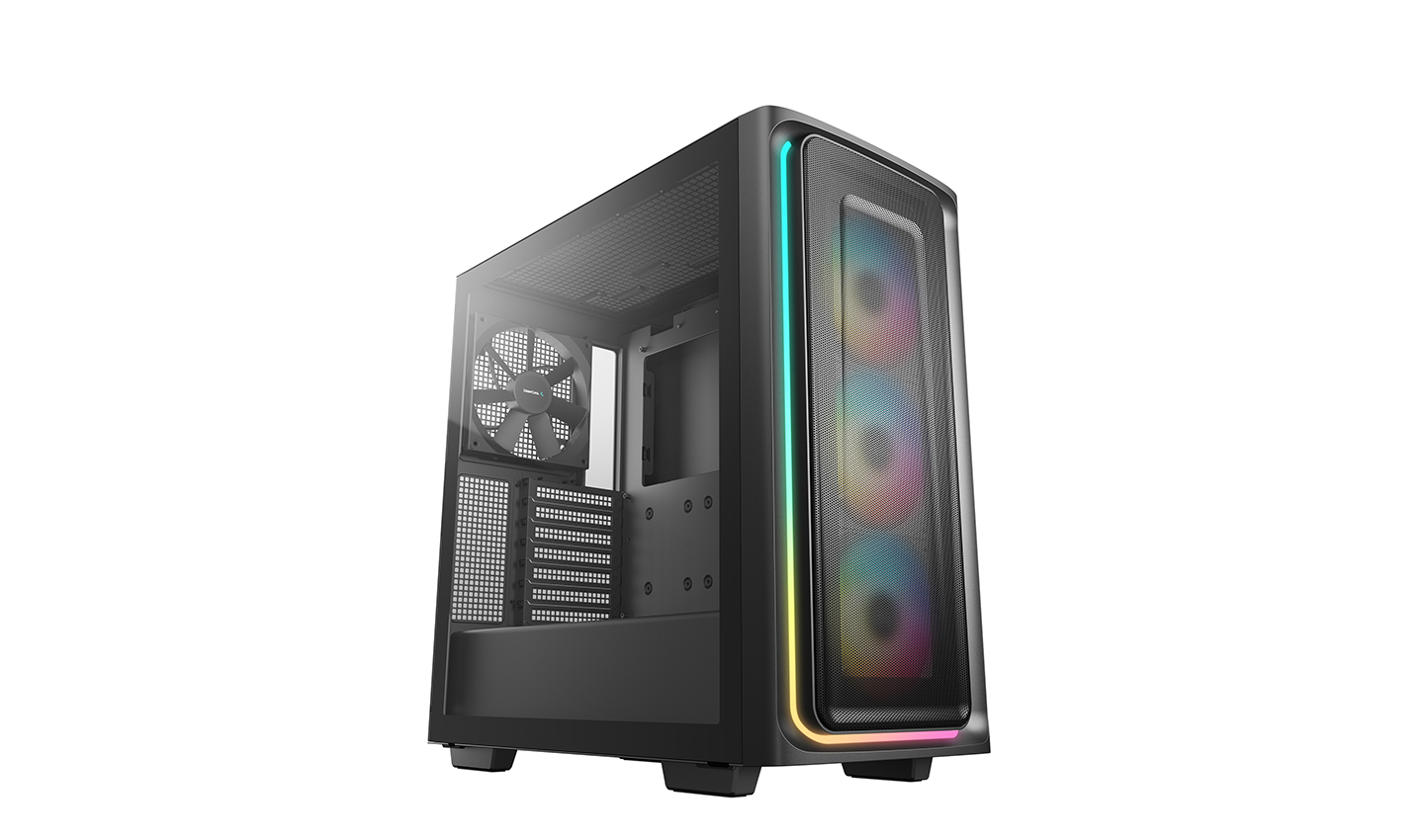 The DeepCool CG540 MESH Mid-Tower Case displays a striking tempered glass panel and generous cooling capacity in an updated modern design that makes system building a breeze with four pre-installed fans.