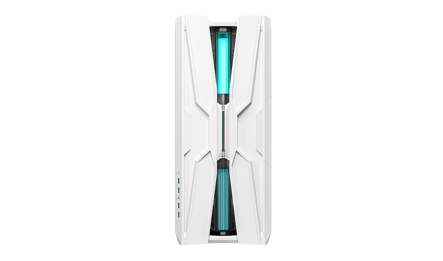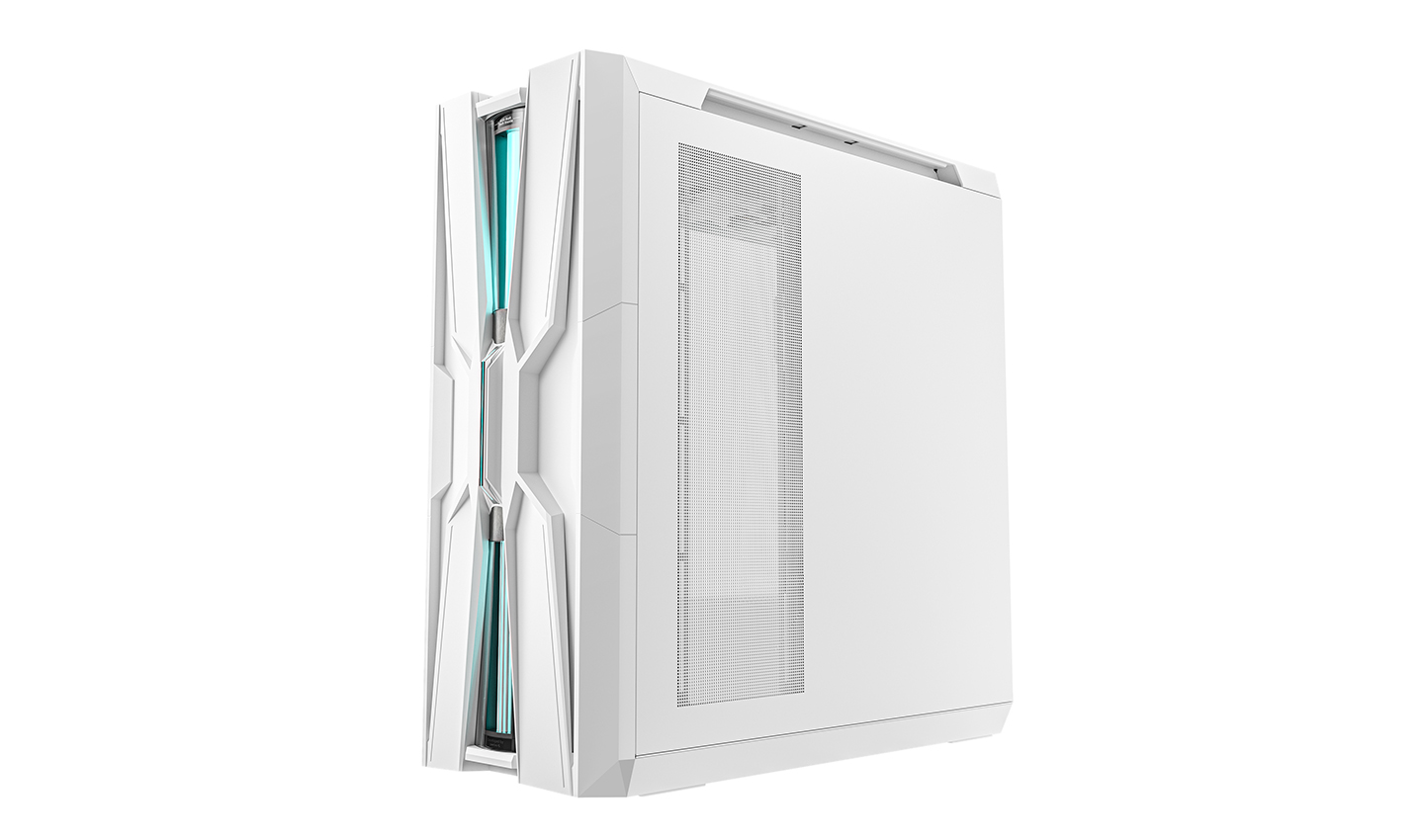 Inspired by the flowing geometry of the genome, GENOME III WH brings a new expression to PC case design. A transparent front reservoir showcases fluid in motion, while DeepCool’s patented Z-shaped fittings route coolant tubing cleanly upward from the CPU block, enabling a hidden liquid path that keeps the interior open and unobstructed. The RGB light column synced with the motherboard adds a dynamic visual pulse, hinting at the intelligent system running within.