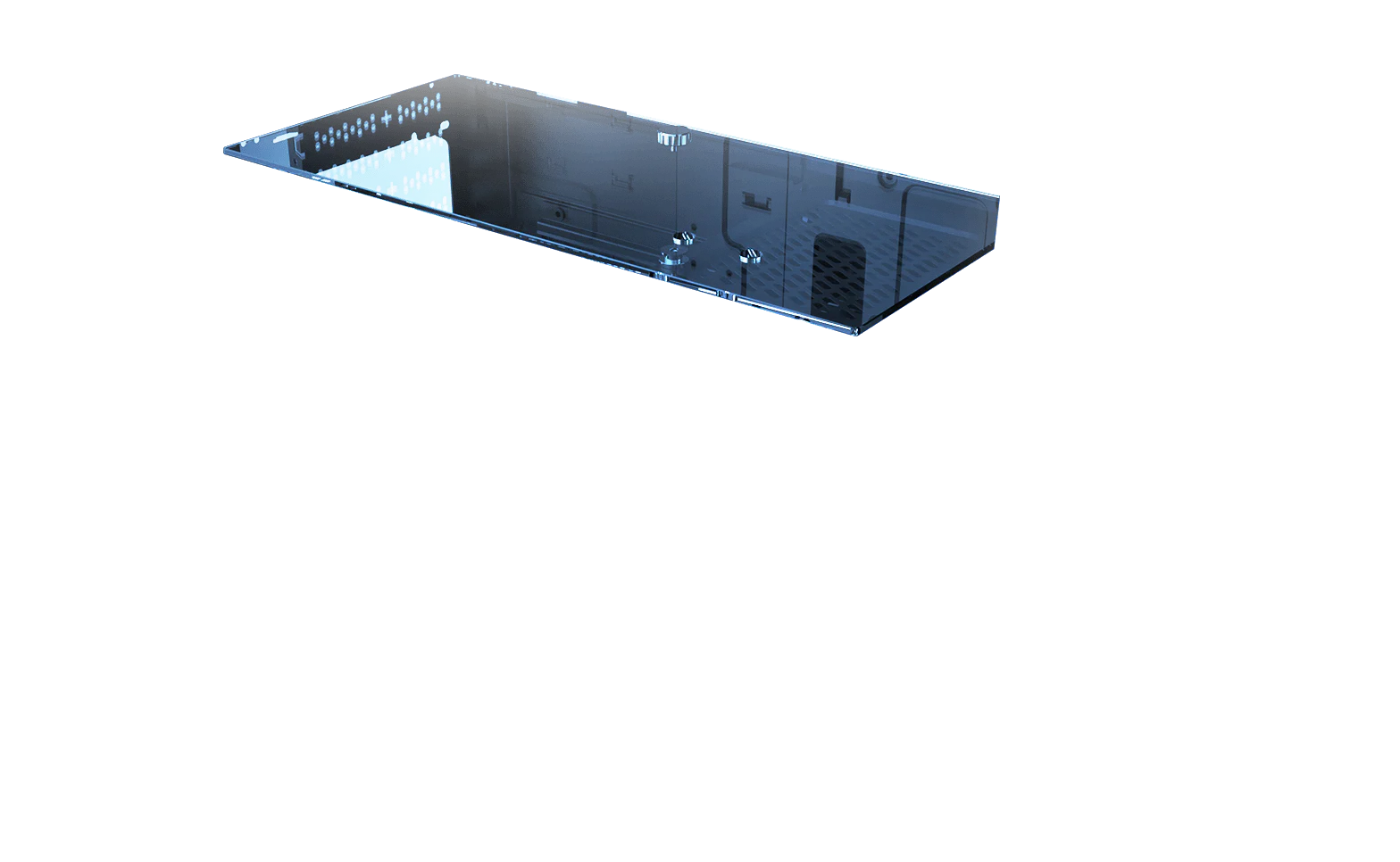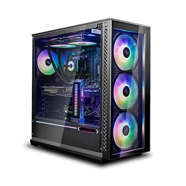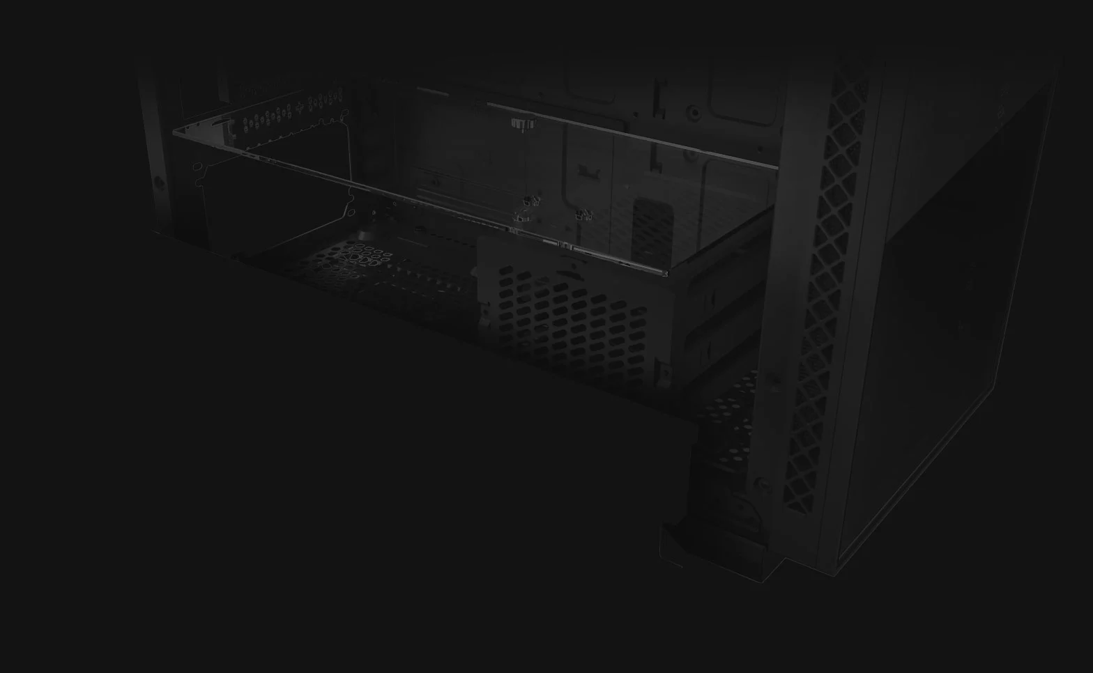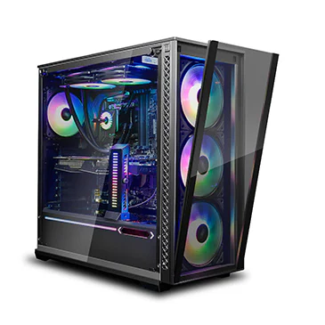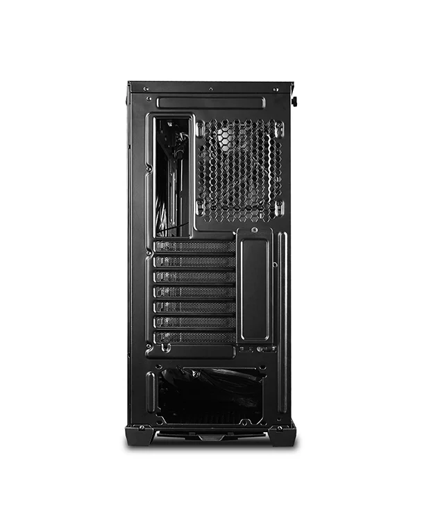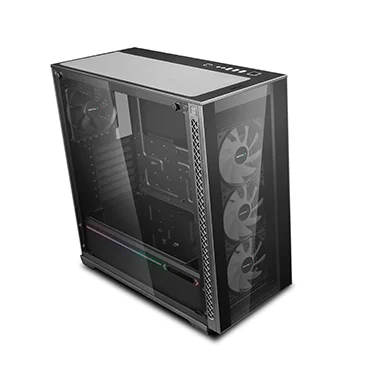 The front glass panel is easily dismounted with a single button press. Side panels can be removed with just two screws.