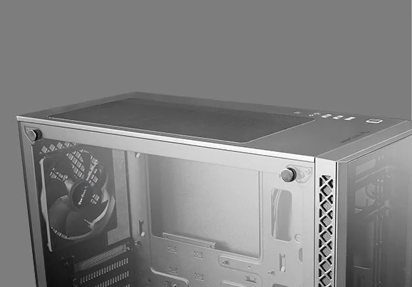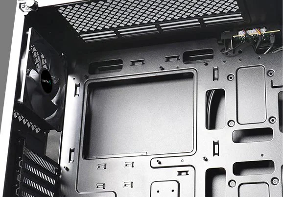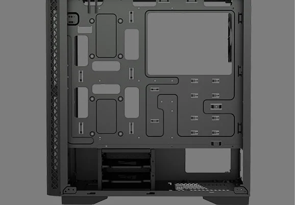 Optimized airflow is guaranteed with two large air intakes in two sides of the front panel, and an air exhaust in the back and on the top, to keep your components cool