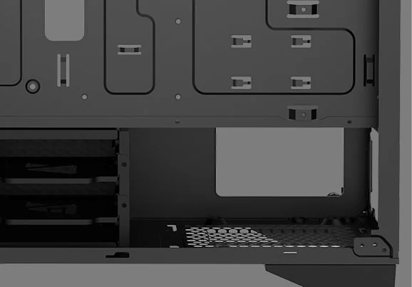 MATREXX 50 ADD-RGB 4F is equipped with a PSU shroud to keep the cables and the system neat and tidy
