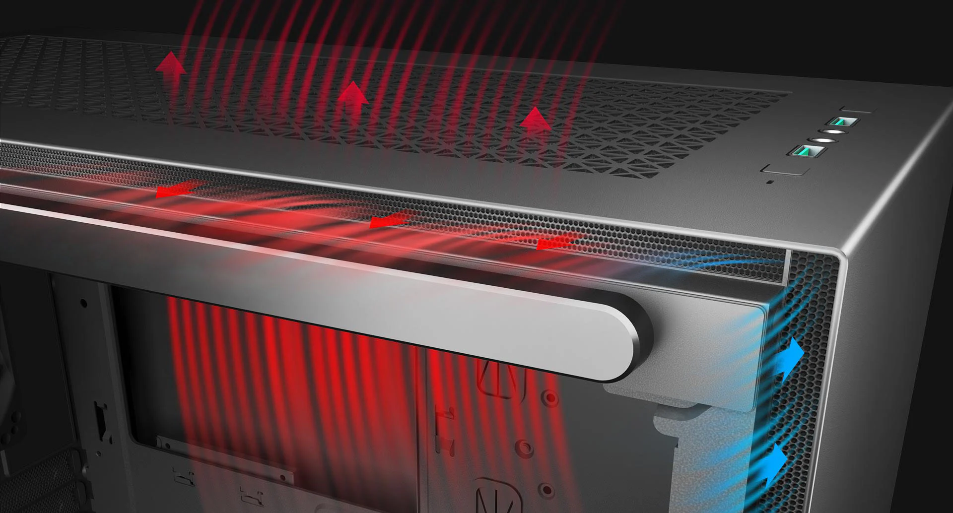 The 13mm-wide intake channels are located on both sides of the front panels, it remains concealed while providing more-than-sufficient air supply.