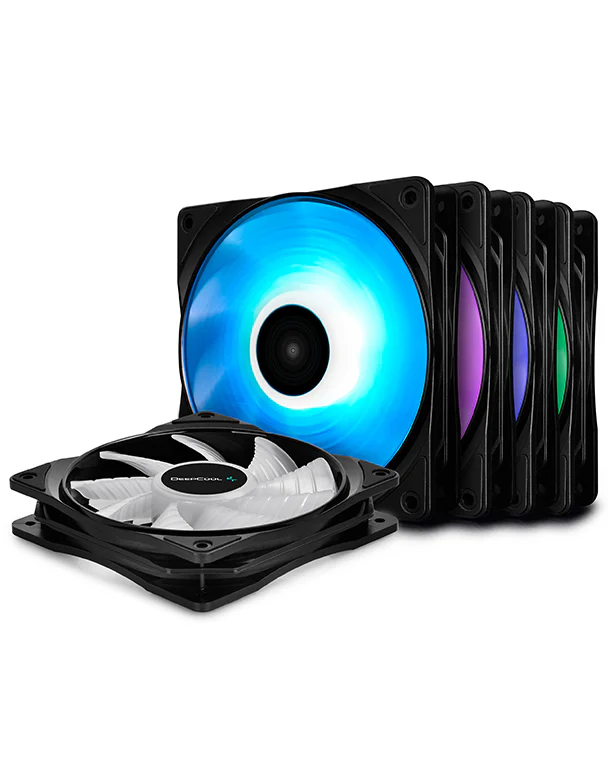 The DeepCool RF120M 5in1 PWM fan kit features 30 RGB LEDs with 6 ultra-bright LEDs on each fan offering spectacular light and great cooling.