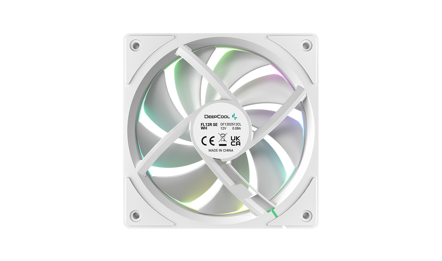 The DeepCool FL12R SE WH features a reversed fan blade design, delivering stunning lighting effects with 20 individually addressable RGB LEDs, combining vibrant colors with exceptional cooling performance. Three FL12R SE WH fans are included in this package.